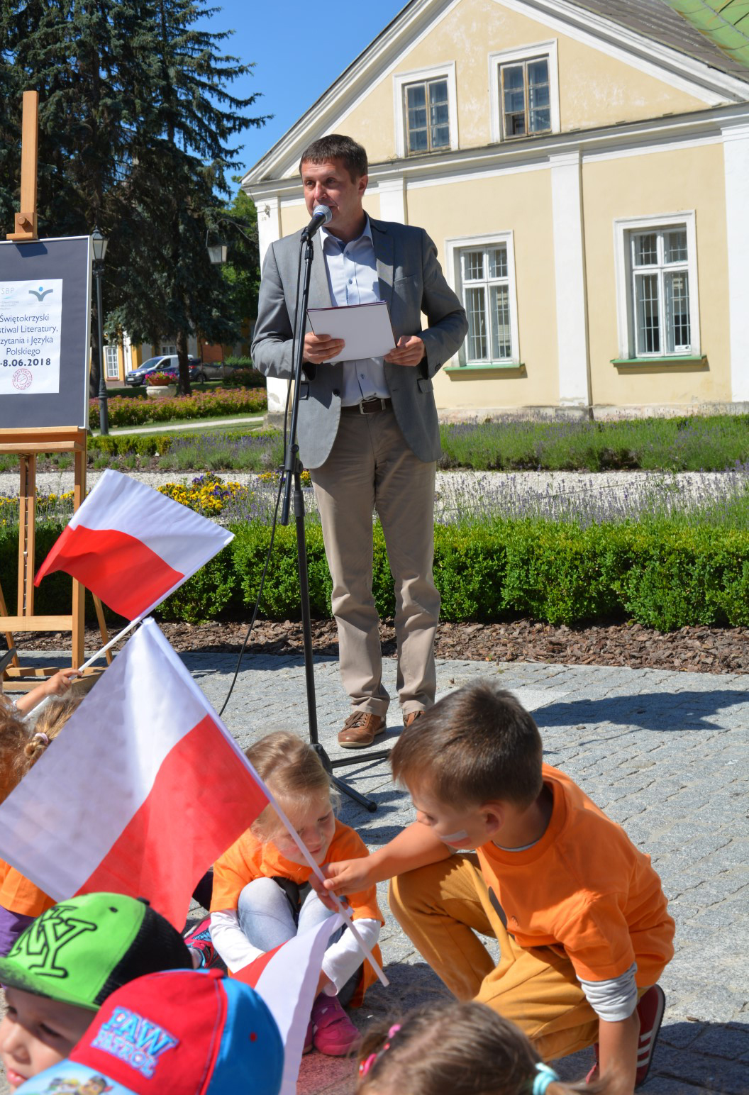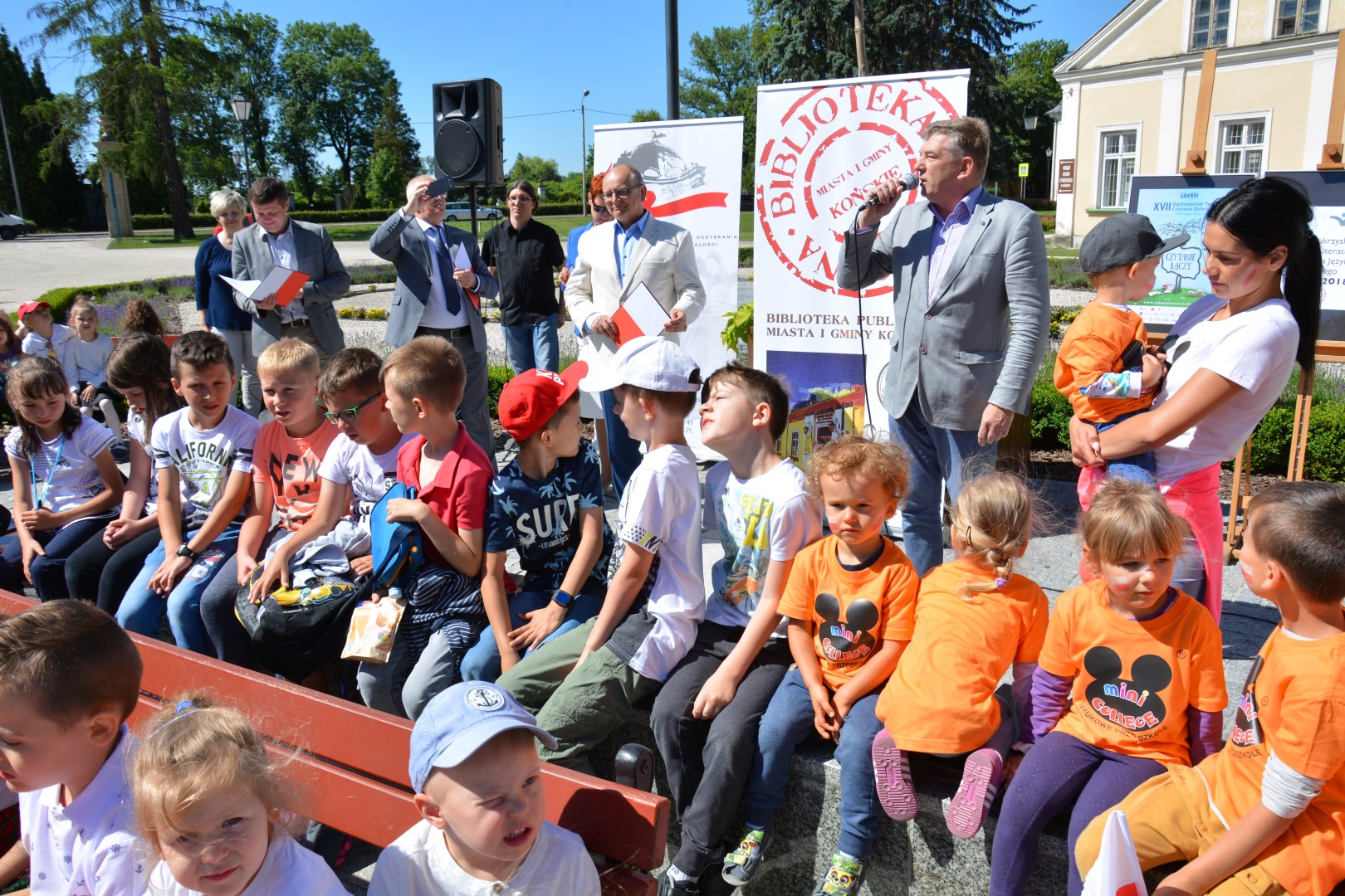 Biblioteka Publiczna w słoneczny czwartkowy poranek 7 czerwca zorganizowała przed swoją siedzibą przy fontannie w Parku Miejskim imprezę patriotyczną pod nazwą „Czytanie przy fontannie. Czytajmy Dzieciom w Niepodległej”. Impreza wpisuje się w miejsko-gminne obchody 100-lecia odzyskania przez Polskę Niepodległości. Zorganizowano ją również przy okazji trwającego w dniach 4-8 czerwca 2018 r. Świętokrzyskiego Festiwalu Literatury, Czytania i Języka Polskiego, zorganizowanego przez Okręg Świętokrzyski Stowarzyszenia Bibliotekarzy Polskich, a także XVII Ogólnopolskiego Tygodnia Czytania Dzieciom. Program spotkania wypełniło czytanie wierszy patriotycznych przez władze miasta oraz wspólne wykonanie pieśni patriotycznych przez zebranych przy fontannie przedszkolaków i uczniów koneckich szkół. Wiersze czytali burmistrzowie MiG Końskie: Krzysztof Obratański, Krzysztof Jasiński oraz Marcin Zieliński a także pani Naczelnik Wydziału Edukacji Krystyna Milczarek. W spotkaniu uczestniczyło ok. 500 dzieci z następujących szkół i przedszkoli: Szkoła Podstawowa nr 2, Szkoła Podstawowa w Stadnickiej Woli, Prywatna Szkoła Podstawowa, Szkoła Podstawowa w Pomykowie, Przedszkole nr 1, Przedszkole nr 2, Przedszkole nr 3, Przedszkole nr 4, Przedszkole nr 5, Przedszkole „Bajkowa Kraina”, Przedszkole „Czarodziejski Młynek”, „Akademia Przedszkolaka”, Przedszkole „Miś” oraz Przedszkole Naukowe „Mini College” w Końskich.