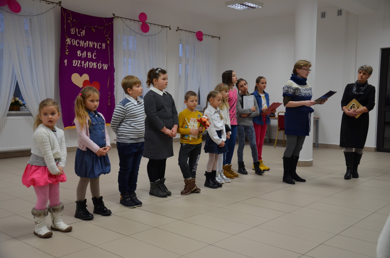 Podobnie było w Sokołowie, gdzie bibliotekarka Alina Cholewa wraz z panią sołtys Krystyną Stolarską zaprezentowały krótki program artystyczny, zaprosiły licznie zgromadzonych gości na słodki poczęstunek, a później do wspólnego tańca i śpiewania. Bohaterowie tych uroczystości, czyli szanowne babcie i dziadkowie nie kryli łez wzruszenia, widząc swoich wnuczków w roli młodych i zdolnych artystów.