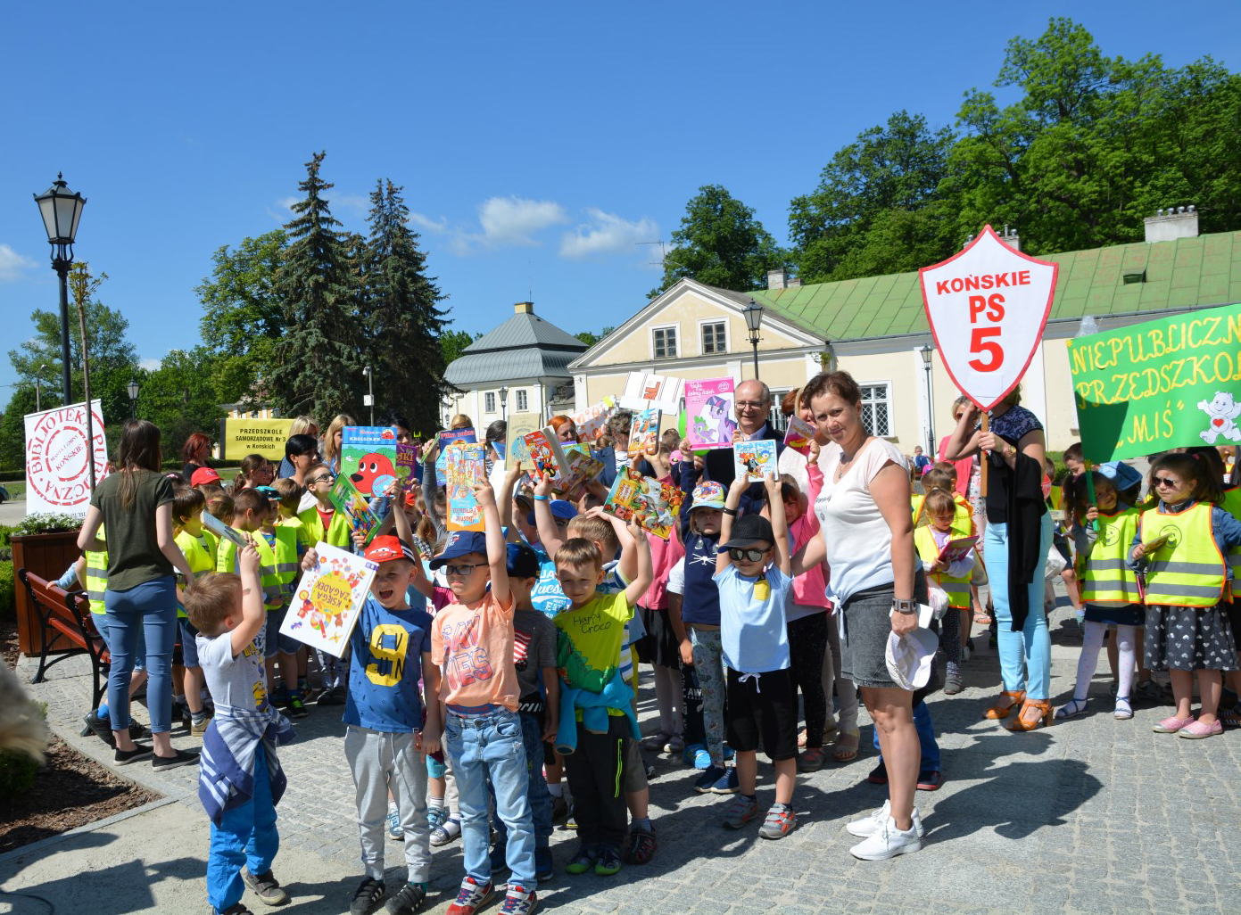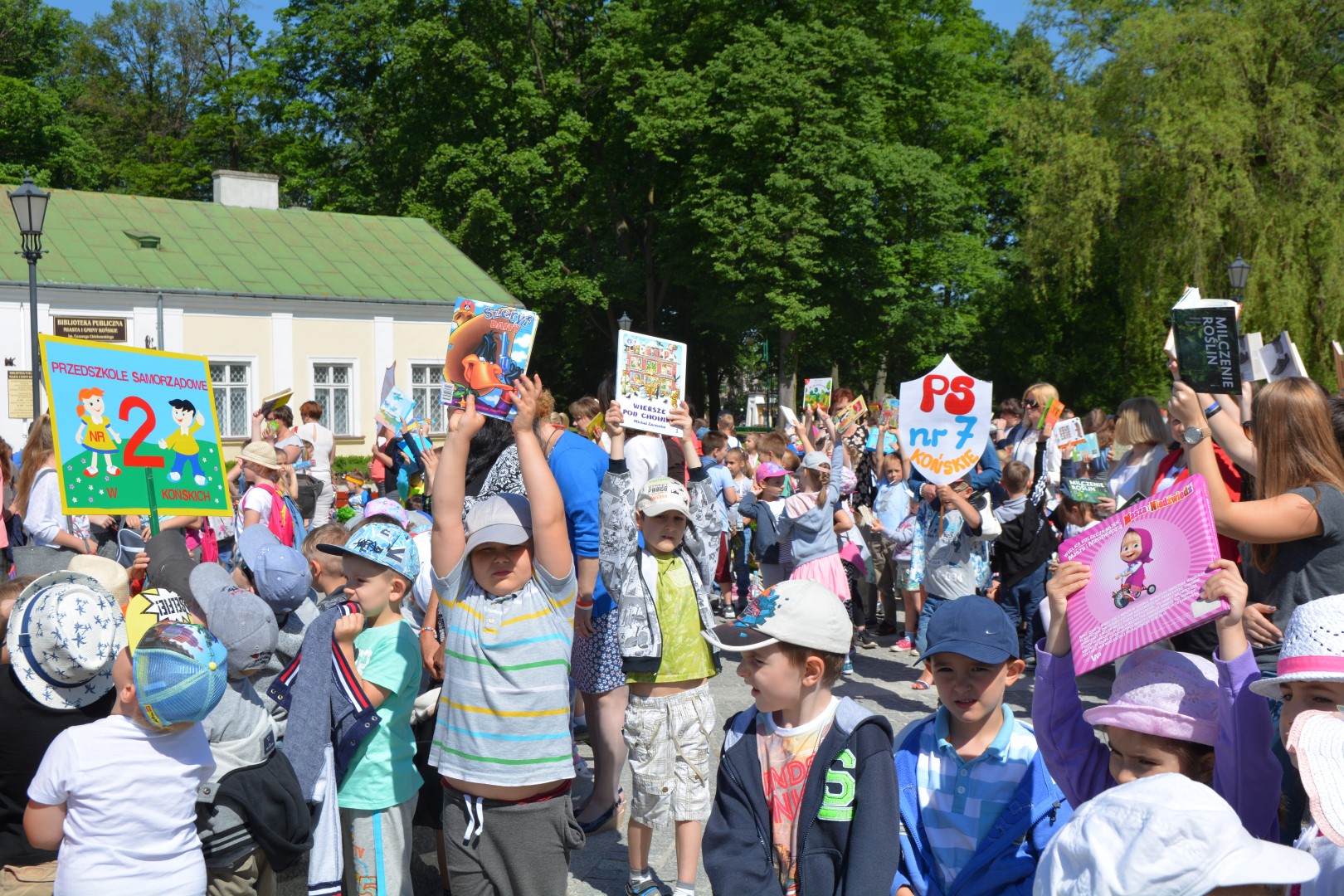 W ramach ogólnopolskiej akcji organizowanej przez redakcję miesięcznika „Biblioteka w szkole” zorganizowaliśmy masową manifestację poparcia czytelnictwa. W akcji wzięły udział 34 grupy z 7 przedszkoli (samorządowe i niepubliczne), 4 szkół podstawowych oraz 1 ponadgimnazjalnej (II LO). Łączna ilość uczestników wyniosła 692 osoby. Z dziećmi uczestniczącymi w akcji spotkali się przedstawiciele władz miasta i gminy Końskie – burmistrz Krzysztof Obratański,  z-cy burmistrza – Krzysztof Jasiński i Marcin Zieliński oraz naczelnik Wydziału Edukacji – Krystyna Milczarek. Do udziału w spotkaniu zaproszono przedstawicieli mediów – obecni byli redaktorzy Echa Dnia, Tygodnika Koneckiego oraz telewizja internetowa TKN24 Multimedialne Centrum Powiatu Koneckiego. Wszystkie dzieci przyniosły swoje ulubione książki i w tym samym momencie czytały je. Natomiast głośno, z podziałem na role, odczytały wspólnie z Burmistrzem MiG wiersz W. Bełzy „Katechizm polskiego dziecka”.