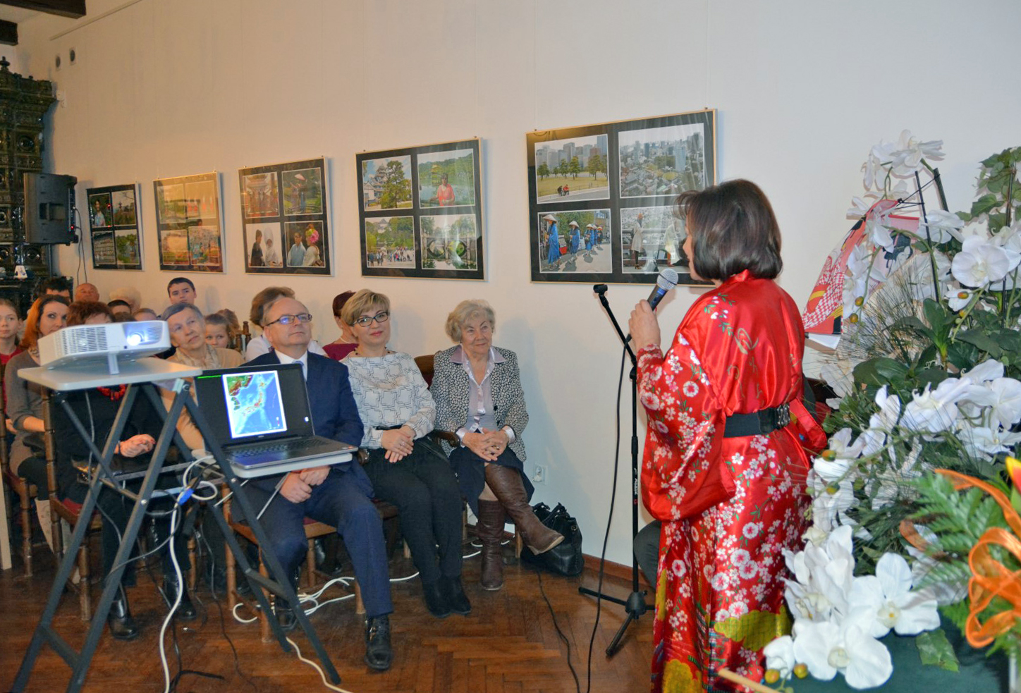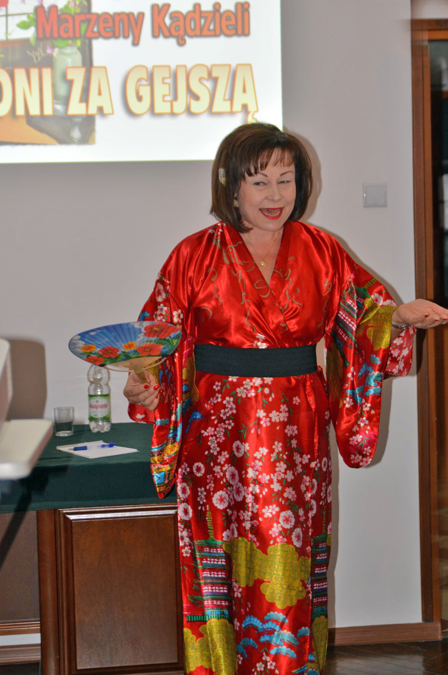 Marzena Kądziela opowiadała bardzo plastycznie i barwnie o swojej fascynacji Japonią, o refleksjach z podróży, poszukiwaniu gejszy, przedstawiła wiele pięknych fotografii opisujących uroki tego kraju oraz jego mieszkańców. Jej opowieść opisywała religię, japońskie zwyczaje, zabytki i piękne parki, niecodzienną żywność oraz dziwaczną modę. Ale przede wszystkim uroki święta kwitnącej wiśni, w trakcie którego zwiedzała japońskie wyspy. To już kolejna barwna i ciekawa opowieść tej podróżniczki mająca premierę w koneckiej Bibliotece i ciesząca się ogromnym zainteresowaniem publiczności.