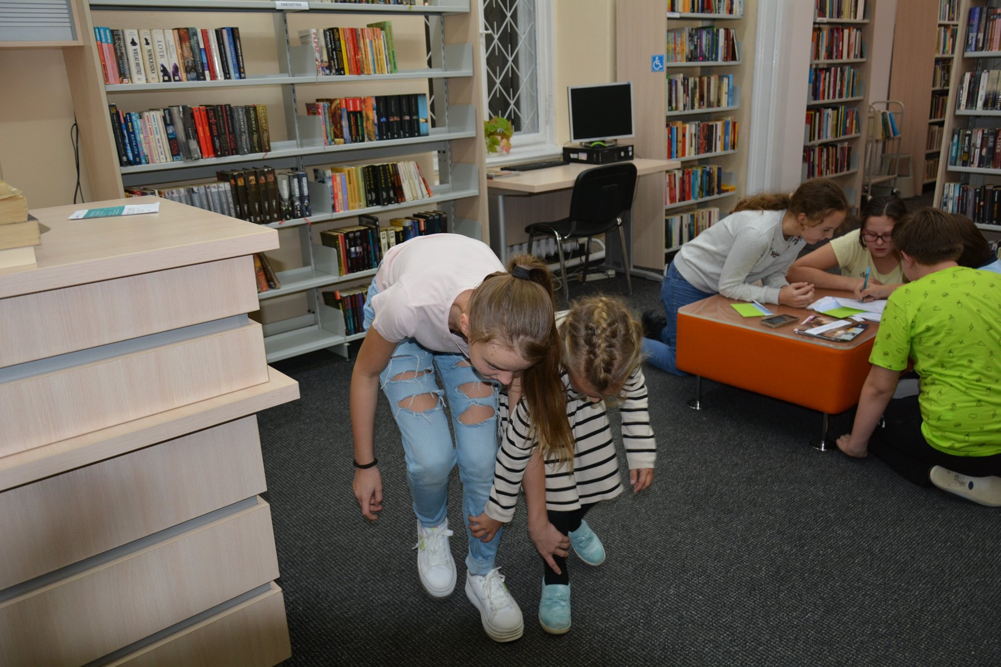 Kolejnym atrakcyjnym punktem wieczoru była gra „Nocne Marki” na terenie biblioteki. Gra była okazją, aby najmłodsi czytelnicy zwiedzili nieznane im dotychczas zakamarki biblioteczne, gdzie ukryto zadania i „skarb” Po skończonej grze odbyła się projekcja filmu „Ptyś i Bill”, do którego dostęp otrzymaliśmy od organizatorów Nocy Bibliotek.