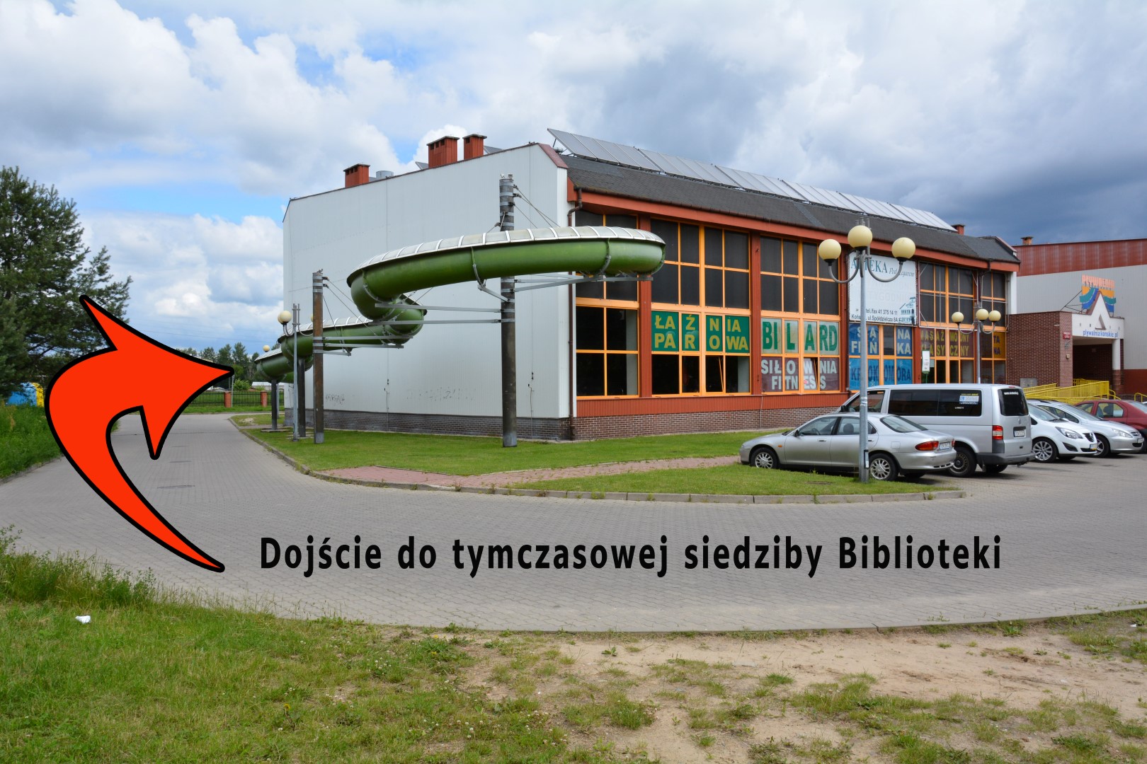 WEJŚCIE DO BIBLIOTEKI OD STRONY BOISKA I DZIEDZIŃCA WEWNĘTRZNEGO.