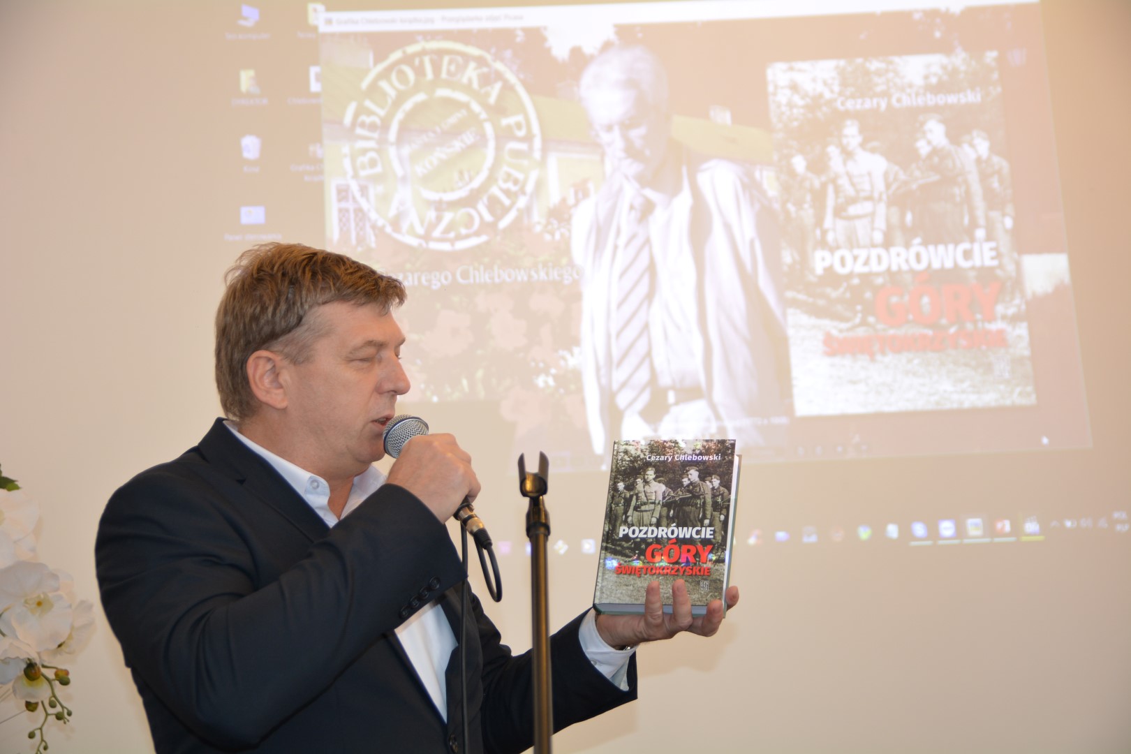 Wzruszające i pouczające było czwartkowe (20.04.2017 r.) spotkanie w Bibliotece Publicznej Miasta i Gminy Końskie im. Cezarego Chlebowskiego. Spotkali się tam czytelnicy i przyjaciele patrona Biblioteki, Cezarego Chlebowskiego z okazji VIII wydania książki „Pozdrówcie Góry Świętokrzyskie”. Na spotkaniu obecni byli: syn pisarza Tomasz Chlebowski, jego córka i zarazem wnuczka pisarza Marianna Chlebowska, aktor Maciej Rayzacher, dr Marek Jedynak z IPN Kielce (autor przedmowy do wznawianego wydania) oraz Mariusz Zwoliński, przedstawiciel wydawcy, czyli Spółdzielni Wydawniczej „Czytelnik”. Organizatorów reprezentował dyrektor Biblioteki Dariusz Kowalczyk, Jan Nowak prezes Fundacji „Pamięć i Niepodległość” oraz władze samorządowe Powiatu Koneckiego i burmistrzowie Miasta i Gminy Końskie. Na spotkaniu gościł również Konrad Łęcki, młody reżyser, autor wchodzącego na ekrany filmu „Wyklęty”. Przed rozpoczęciem spotkania uczczono minutą ciszy zmarłych niedawno: kapitana Stanisława Janiszewskiego „Dewajtisa” i majora Franciszka Teleckiego „Kruka”.