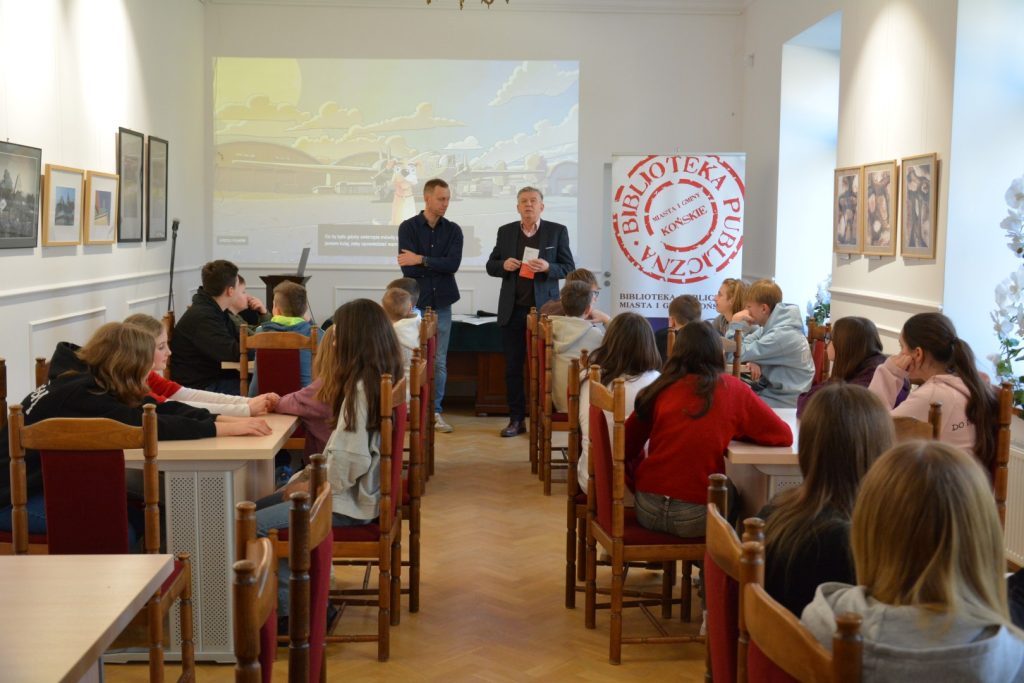 We wtorek 3 marca wspólnie z Instytut Pamięci Narodowej Delegatura w Kielcach zorganizowano w koneckiej Bibliotece kolejną edycję akcji „Wtorek z historią najnowszą”. Dla najmłodszych zajęcia warsztatowe w oparciu o film „Pies Ciapek” poprowadził pan dr Michał Zawisza. „Pies Ciapek” to animowany film edukacyjny z serii „Co by było, gdyby zwierzęta mówiły?”. Jego bohaterem i narratorem jest pies Ciapek, maskotka Dywizjonu lotniczego 305. Film poprzez historię Ciapka przybliża odbiorcy zmagania polskich lotników walczących u boku zachodnich aliantów, a przez to rolę, jaką odegrali w wysiłku wojennym. Z kolei dla starszej grupy wiekowej pan Michał Zawisza przygotował warsztaty pt. „Życie za życie. Nie tylko Ulmowie”, o Polakach ratujących Żydów w czasie II wojny światowej.